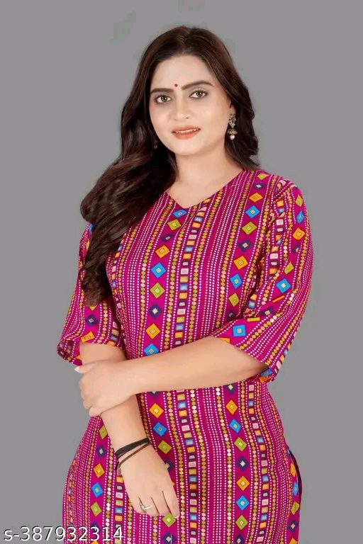 This beautiful kurti features a combination of printed and striped patterns, giving it a modern and trendy look. The three-quarter sleeves add a touch of sophistication, making it suitable for both casual outings and semi-formal occasions. Whether you are heading to work, college, or a casual get-together, this kurti is a perfect choice.