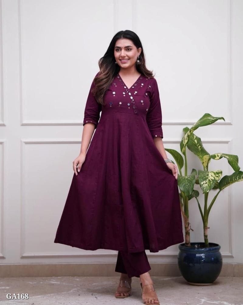 Mirror work kurti for women with elegant design and comfortable cotton fabric. This kurti is perfect for daily wear and special occasions. It gives a traditional and stylish look.