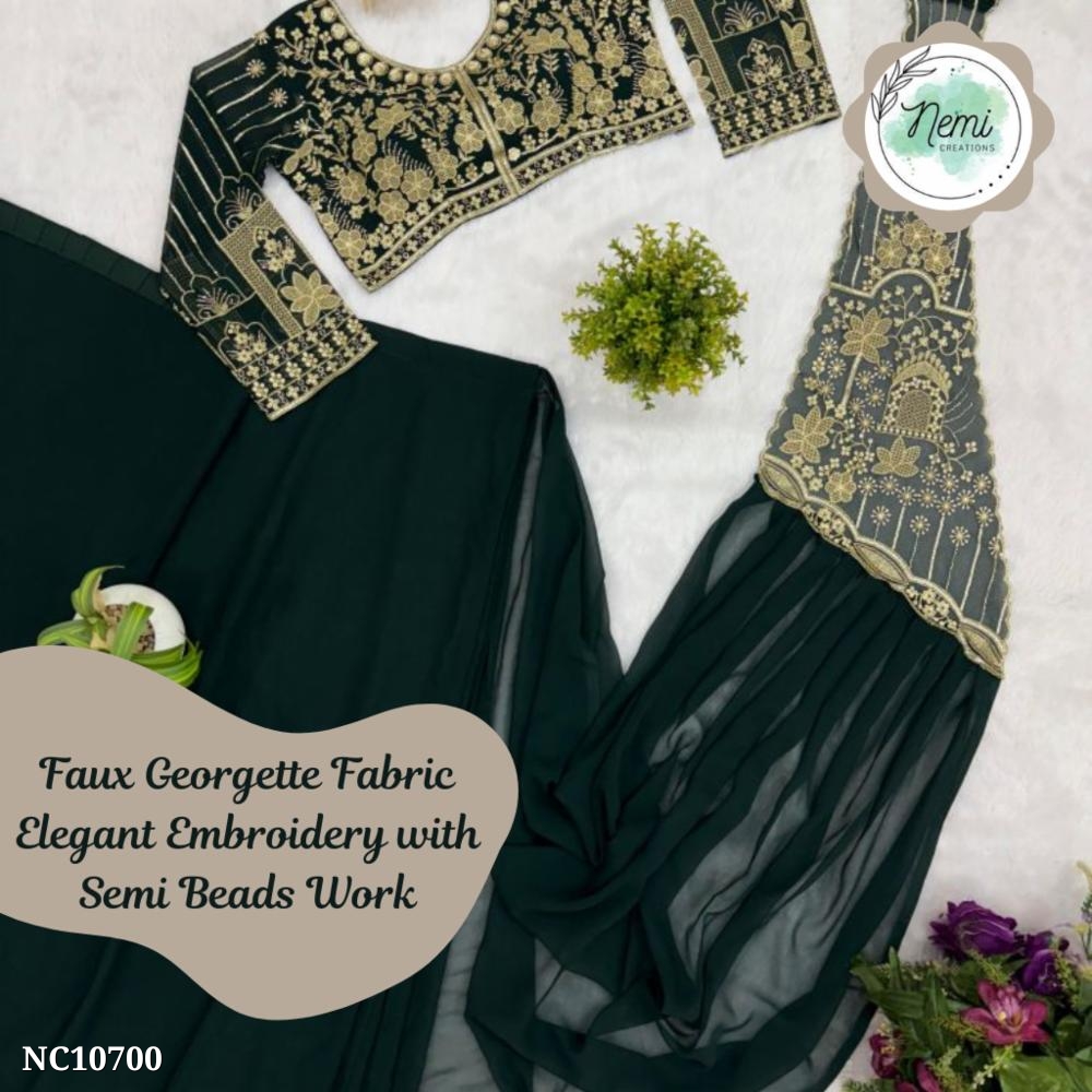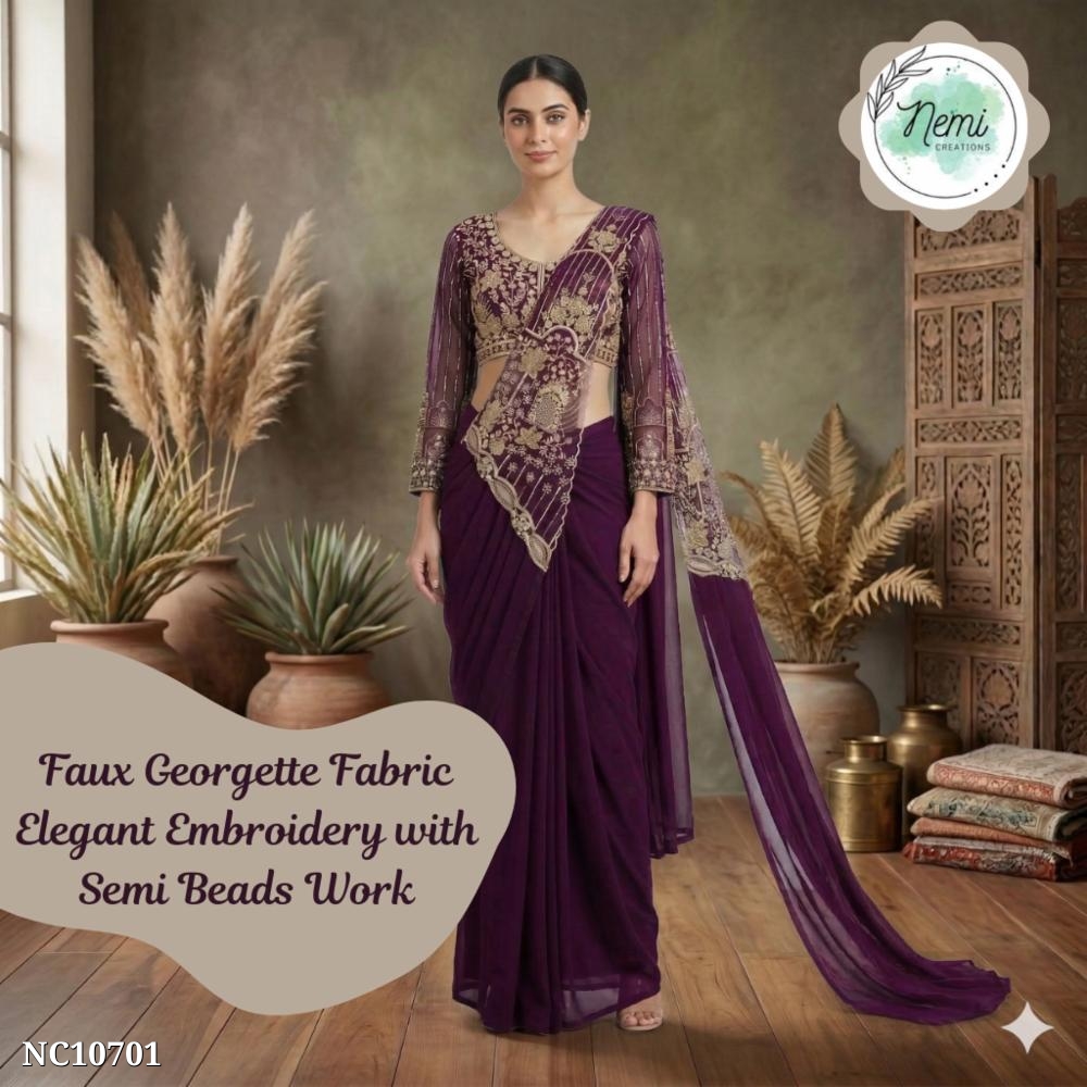 beautifully adorned with intricate embroidery thread and semi beads work. Simply drape and go β effortless elegance in minutes!