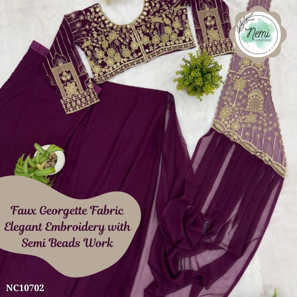 Ready to Wear Faux Georgette Embroidered Saree with Blouse!