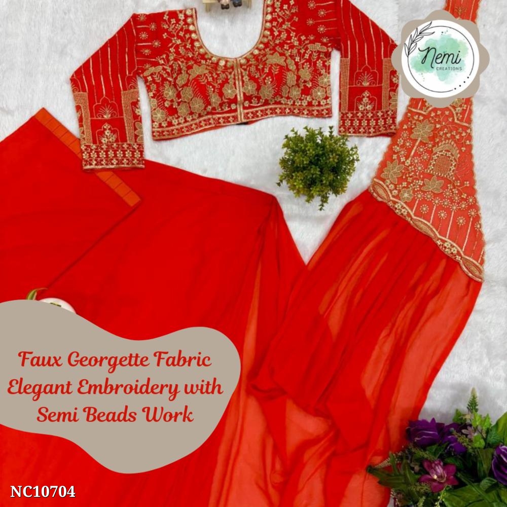Faux Georgette Embroidered Saree with Blouse!