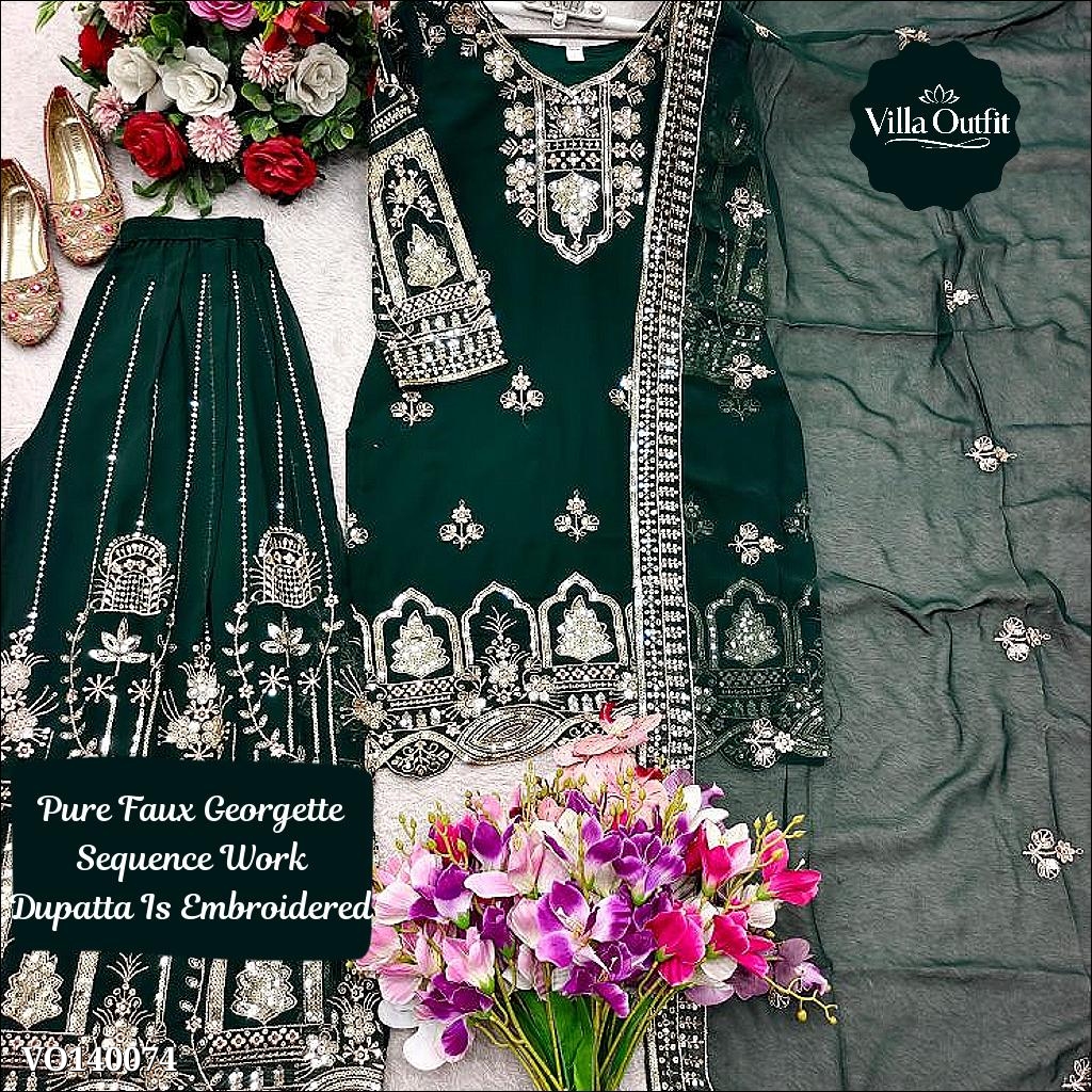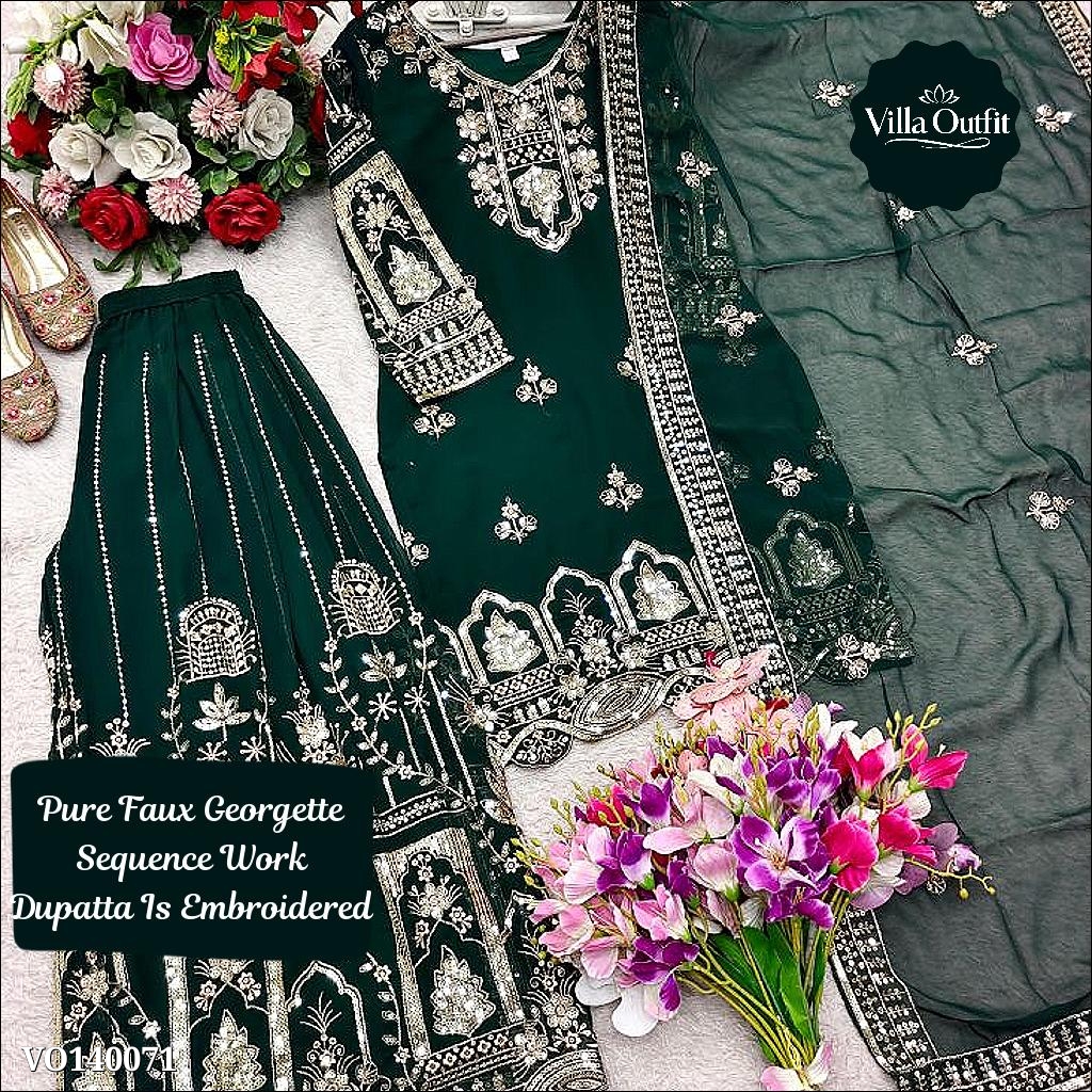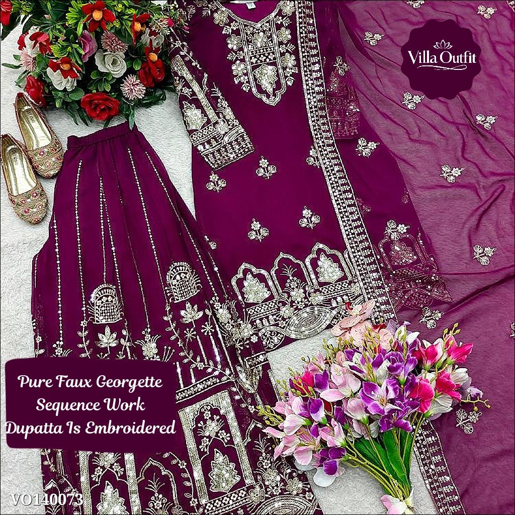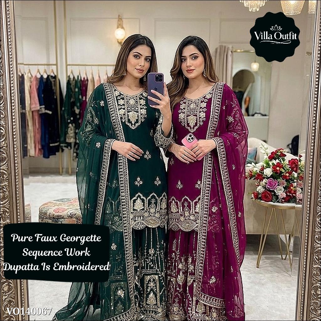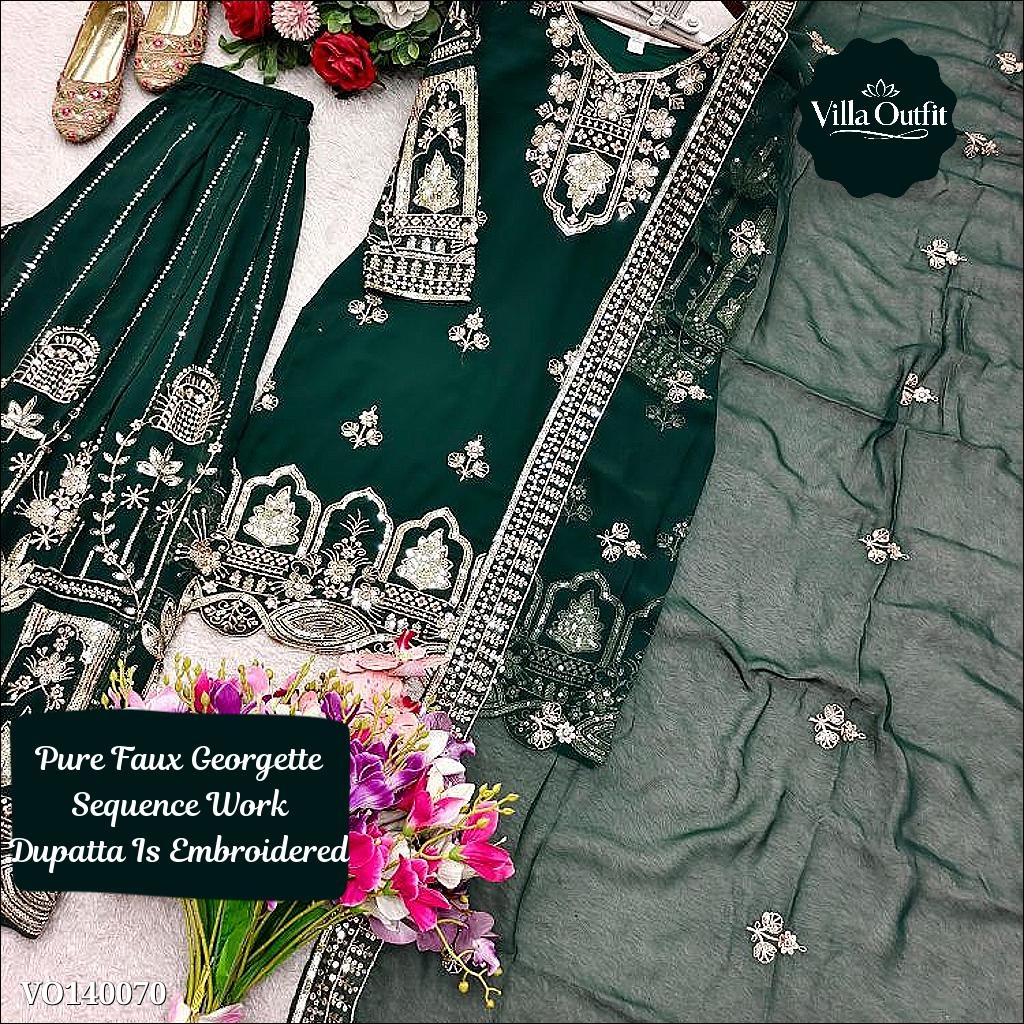 Elevate your ethnic wardrobe with this stunning 3-piece Sarara suit set, crafted from premium Pure Faux Georgette fabric with intricate 5mm sequence embroidery work throughout.