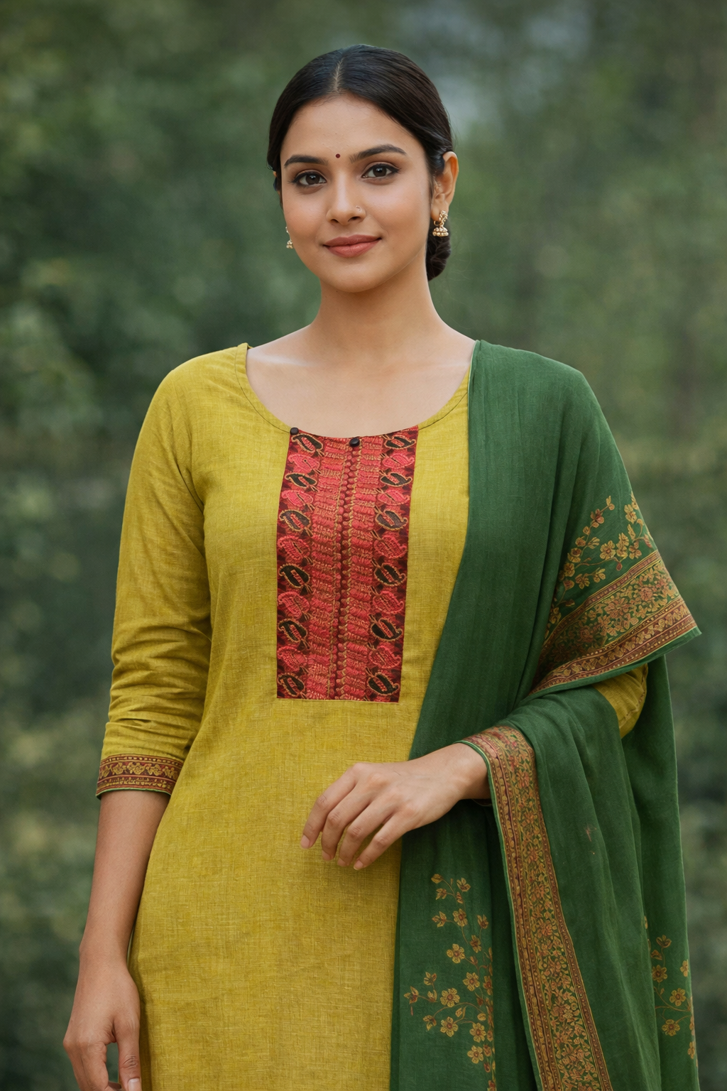 The fabric is soft, lightweight, and durable, ensuring comfort throughout the day. Elegant floral embroidery and neat stitching highlight the craftsmanship. Whether you are attending a family gathering, celebrating Onam or Vishu, or simply looking for casual wear, this kurti adapts perfectly. The relaxed fit flatters all body types, while the vibrant colors reflect Kerala’s cultural richness.